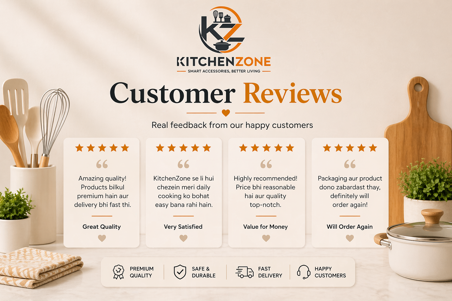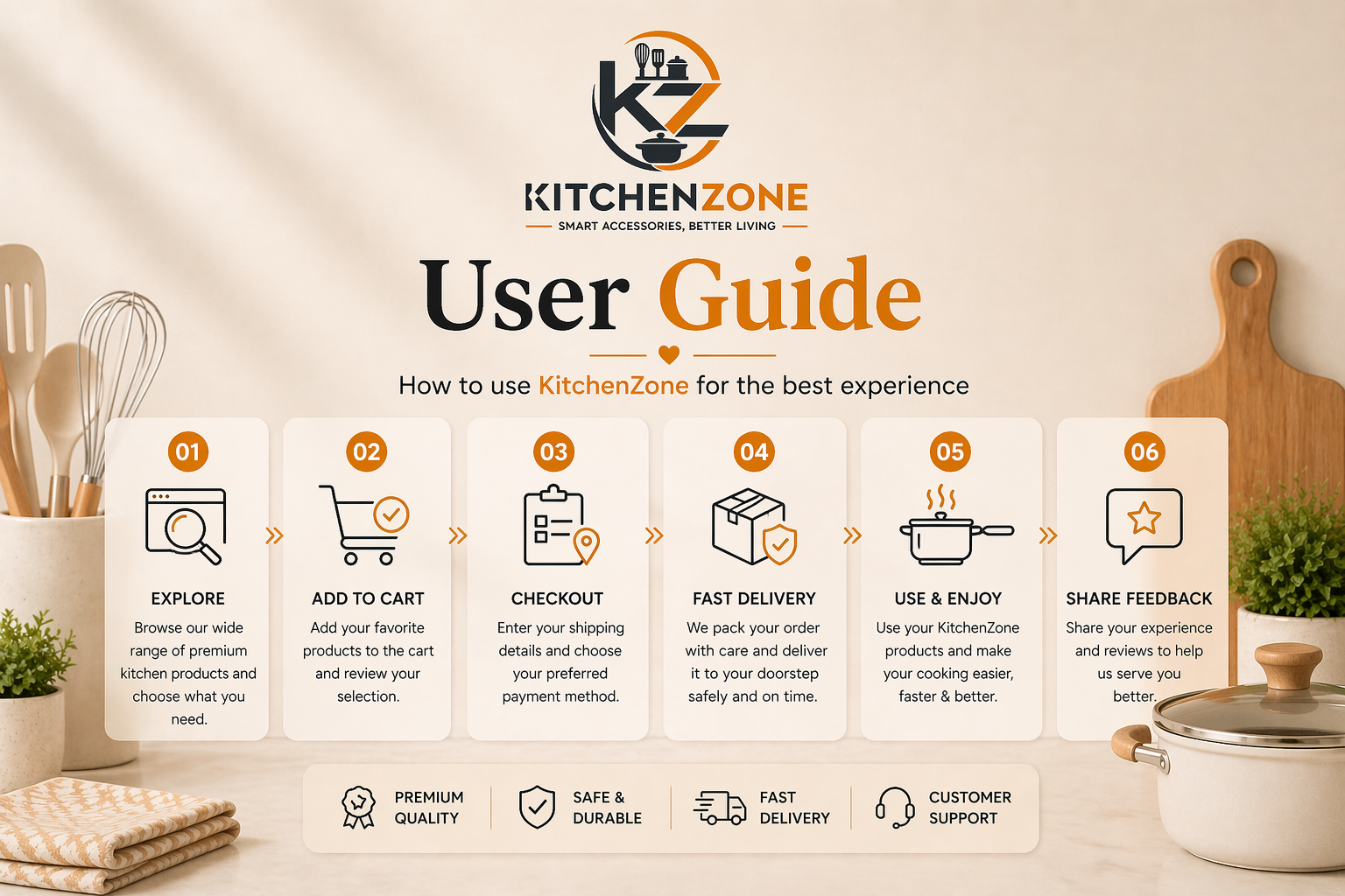 Kitchen Zone is your one stop destination for modern kitchen accessories and smart cooking solutions. We bring high quality, stylish, and affordable kitchen products designed to make your daily cooking easier, faster, and more enjoyable. From smart kitchen gadgets to essential cookware and storage solutions, Kitchen Zone helps you upgrade your kitchen with convenience and elegance.